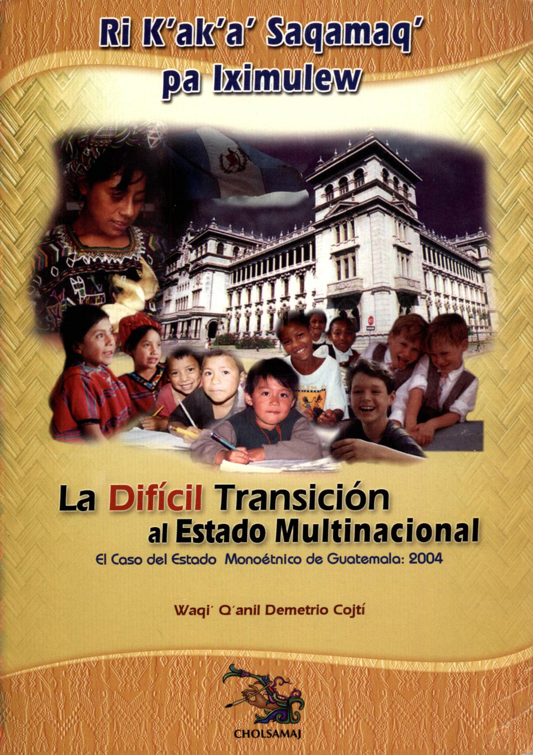 Es un inventario de la situación en que se encuentra el Estado guatemalteco y sus dependencias, en relación a su propia multiculturalización, lo que equivale a decir, en relación al cese del racismo contra los pueblos indígenas dentro del Estado Asimismo, incluye un capitulo de análisis sobre la actual naturaleza monoétnica, monolingüe y monocultural del Estado y las dificultades y lentos avances para su multinacionalización. Evidencia el difícil camino de la incorporación, tratamiento, y proyección del multilingüismo, multiculturalidad y multietnicidad, en y por las distintas dependencias públicas. Es decir, evidencia la manera en que el Estado, actualmente controlado sólo por criollos y ladinos, integra y procesa “lo indígena” en su legislación, estructuras, programas y procedimientos.